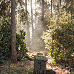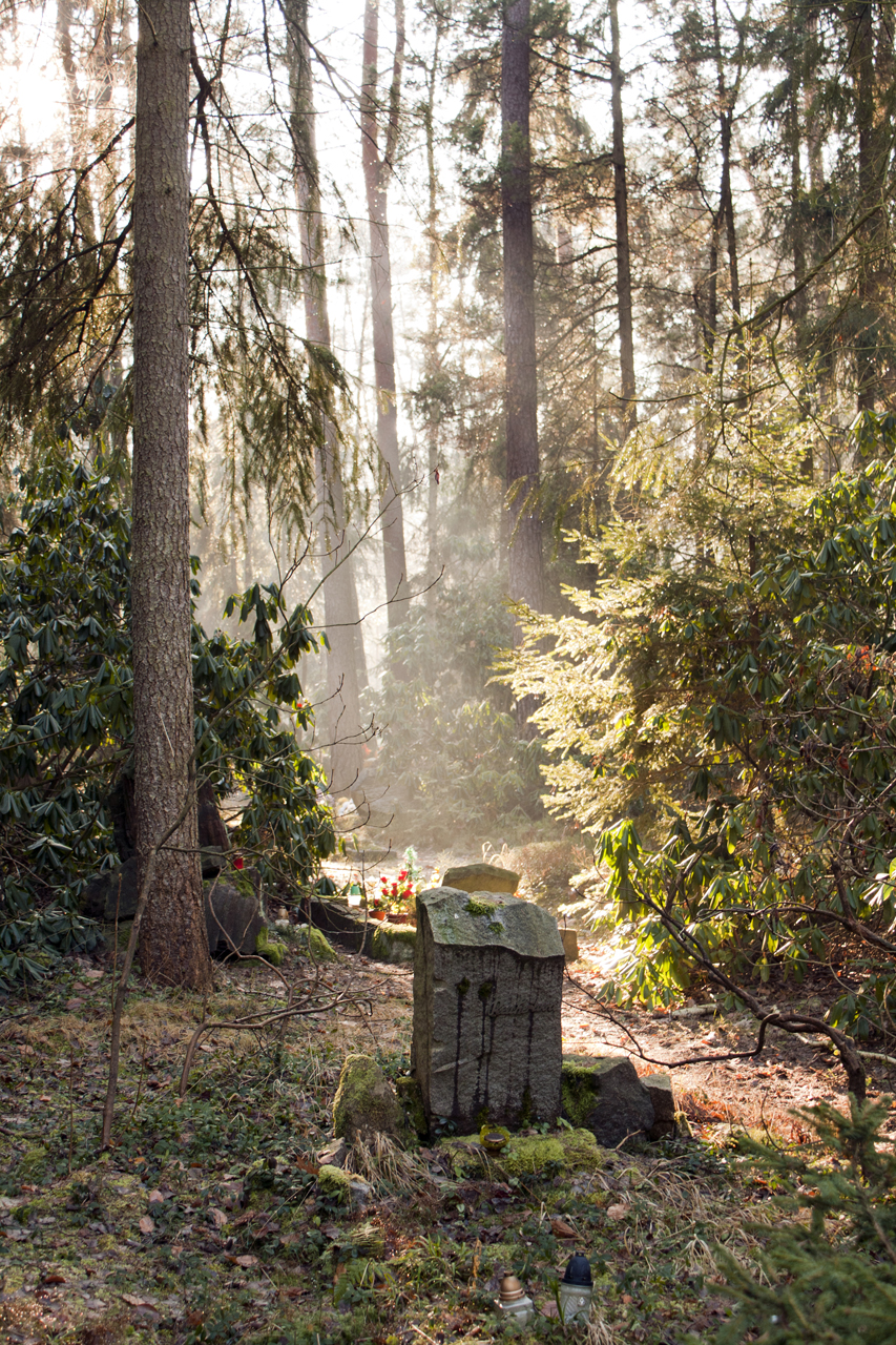 Hřbitov je poměrně velký, je rozdělen na urnovou část a část s klasickými hroby, najdete tady i rozptylovou loučku. Díky umístění v lese je to mimořádně působivé místo, kde fotografie vznikají téměř samy.
